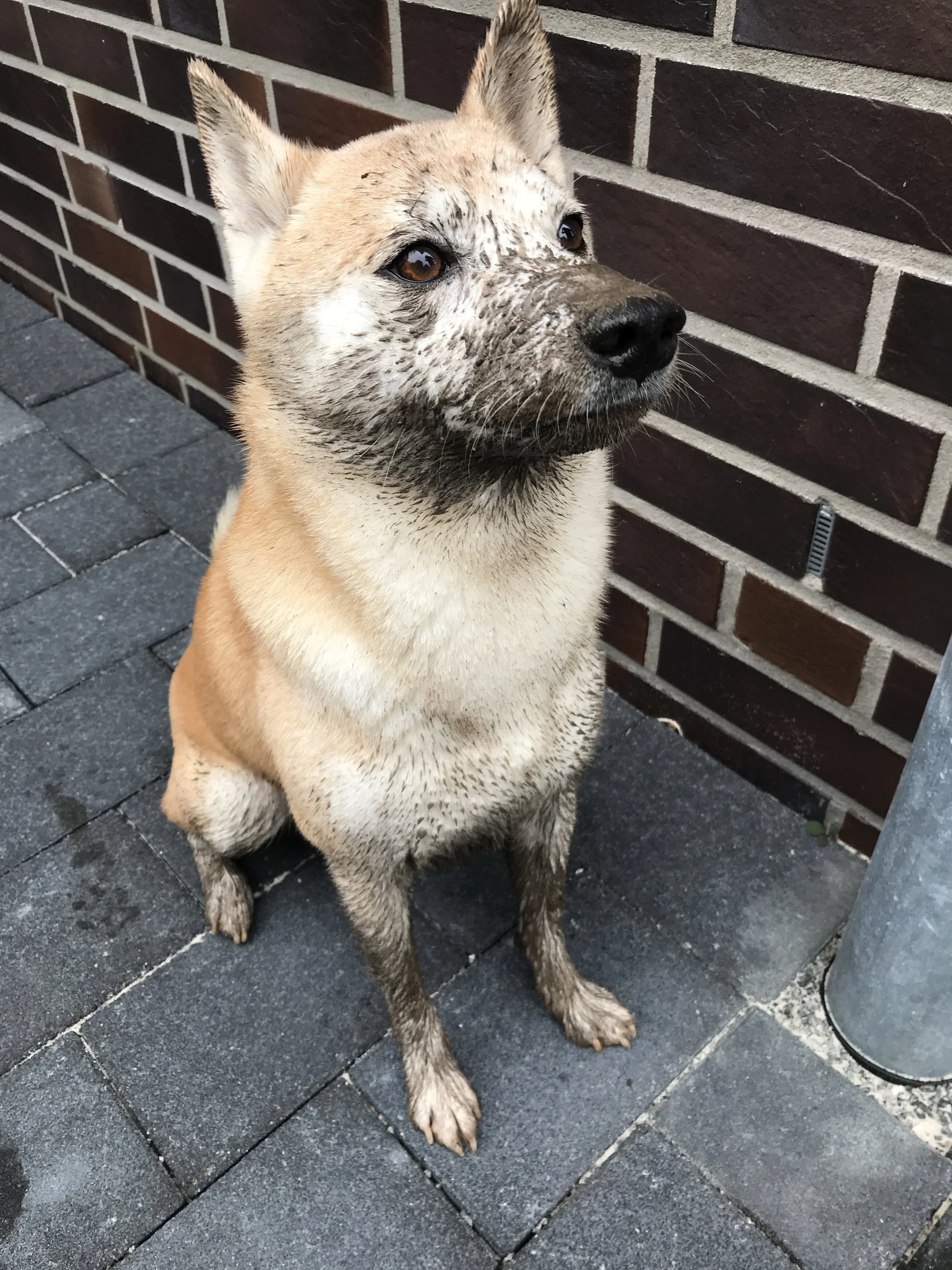 This is my dog Luke after digging out our sprinkler. He definitely needed a bath afterwards!